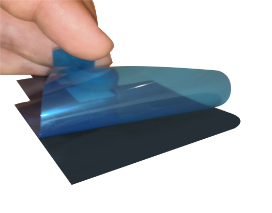 ? Protective film using PET as carrier and coated with low adhesion removable silicone adhesive.