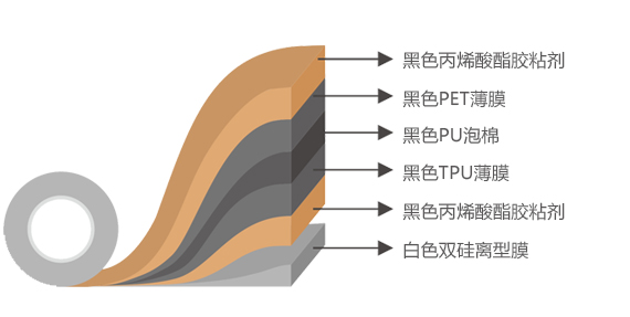 ? 采用PU泡棉復合基材,涂敷強粘再剝離型丙烯酸酯膠粘劑制成的泡棉膠帶。